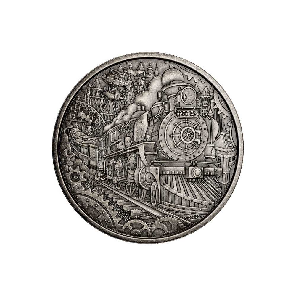 Mince je vyrobena z 3 uncí 99,99% čistého stříbra a je součástí limitované emise 2 500 mincí po celém světě. Zoubkovaný okraj umocňuje průmyslový vzhled a antická povrchová úprava dodává minci jemnou patinu, která zdůrazňuje vzhled starého kovu a strojů. Na rubu i lícní straně se objevují četné ryté detaily, jako jsou ozubená kola, které tvoří atraktivní steampunkový motiv.