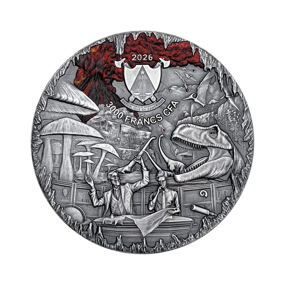Figurent également la valeur nominale, le pays, l’année d’émission, le poids, le métal et sa pureté. Cette face de la pièce est elle aussi riche en détails et possède une finition antique permettant d’admirer chaque millimètre de sa surface, y compris la lave et les explosions du volcan en couleurs vives.