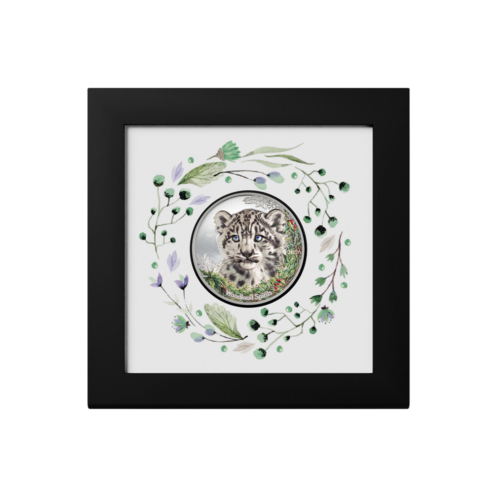 Tato edice představuje mládě sněžného leoparda. Křehké. Ostražité. Nespoutané. Jeho bledá srst a zářivě modré oči vystupují z věnce lesních listů a zimních bobulí, kde se barvy a stříbro setkávají v jemné, úchvatné scéně.