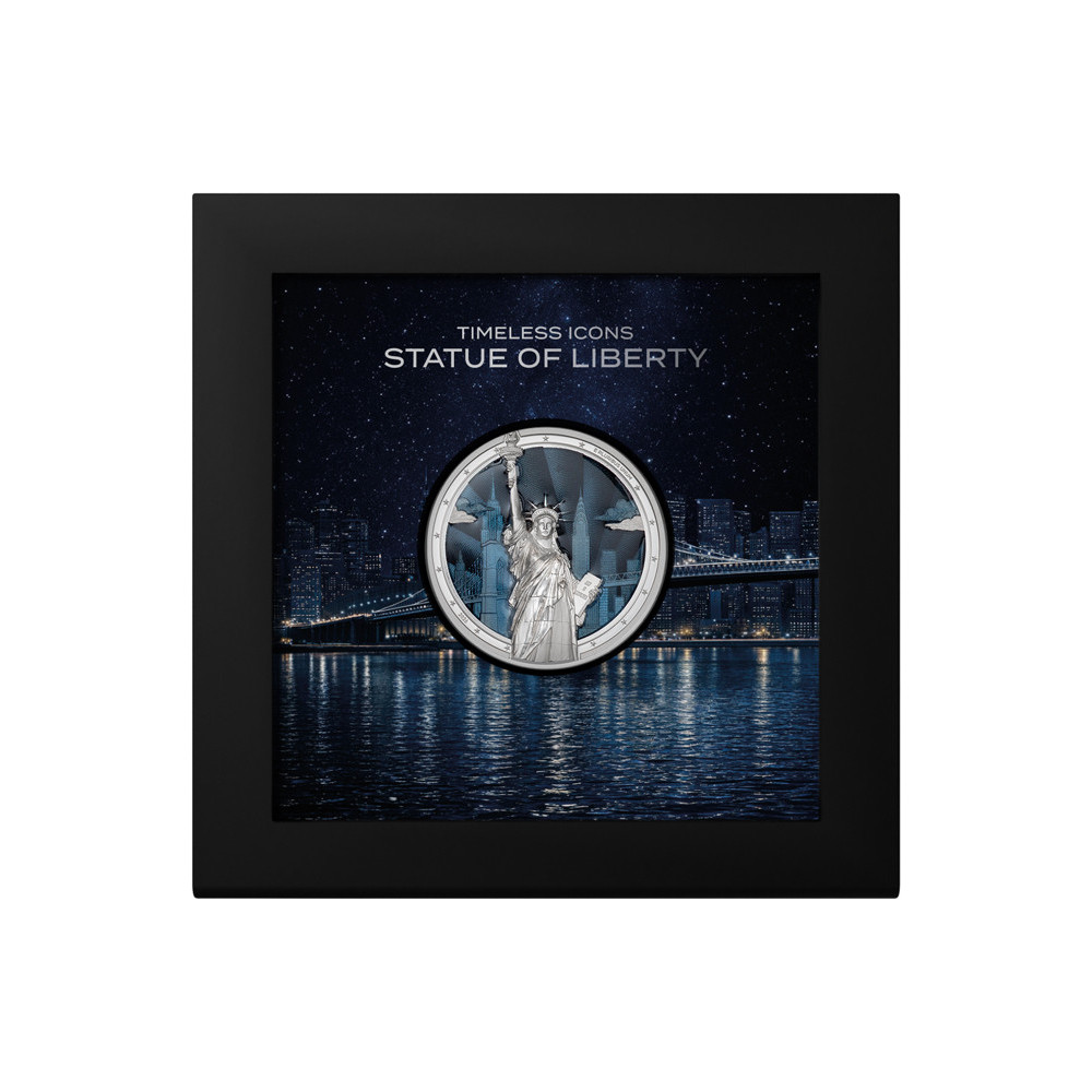 Pozadí tvoří panorama Manhattanu na pozadí jemných guilloché linií, symbolizujících kouzlo této slavné čtvrti. Estetický dojem dotváří smalt, který zvláštním způsobem odděluje Sochu svobody od zbytku mince a záměrně z ní dělá skutečný magnet pro oči. Velmi zdařilá moderní interpretace nadčasové ikony.