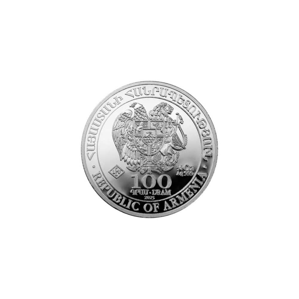 Rubová strana mince vykresluje ikonické přistání Noemovy archy u hory Ararat, jež je vzdálena jen několik kilometrů od Arménie. V popředí se nachází letící holubice s olivovou větvičkou v zobáku, která symbolizovala konec potopy. Celý výjev lemuje opět nápis v angličtině i arménštině.
