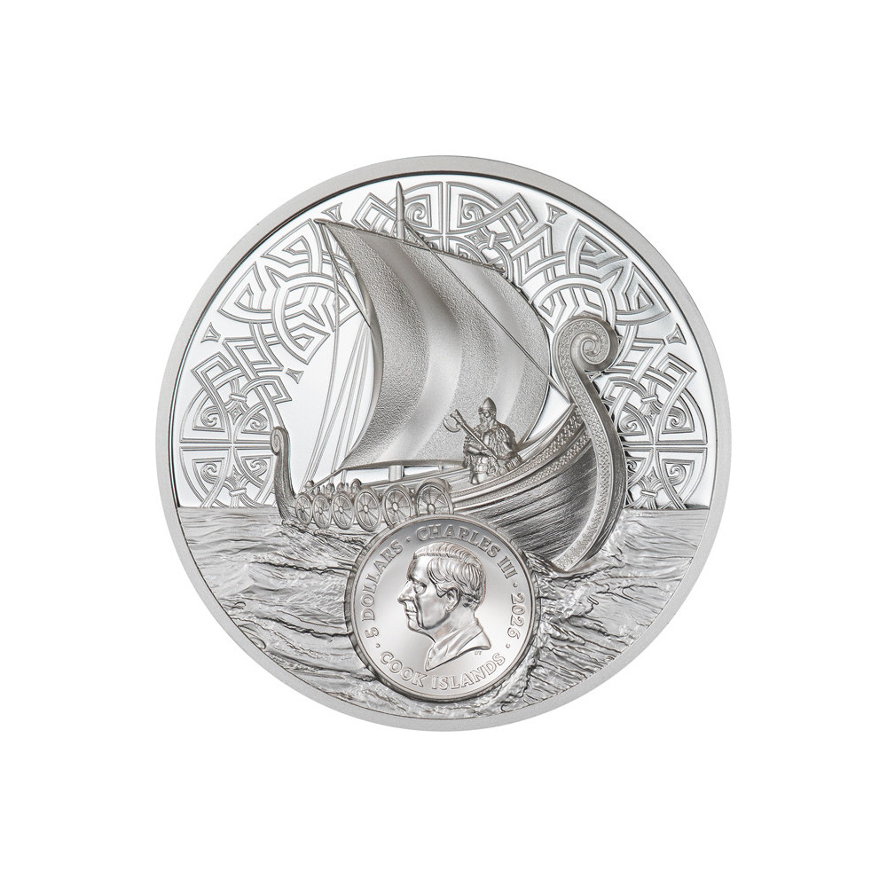 This impressive 1-ounce silver coin pays tribute to legendary Vikings Ragnar Lodbrok, Ivar Boneless and Björn Ironside. It is crafted in high relief with selective gilding and captures the strength, courage and mythical heritage of the Nordic warriors. This masterpiece comes in an elegant box with a certificate of authenticity and is limited to only 999 pieces worldwide.
